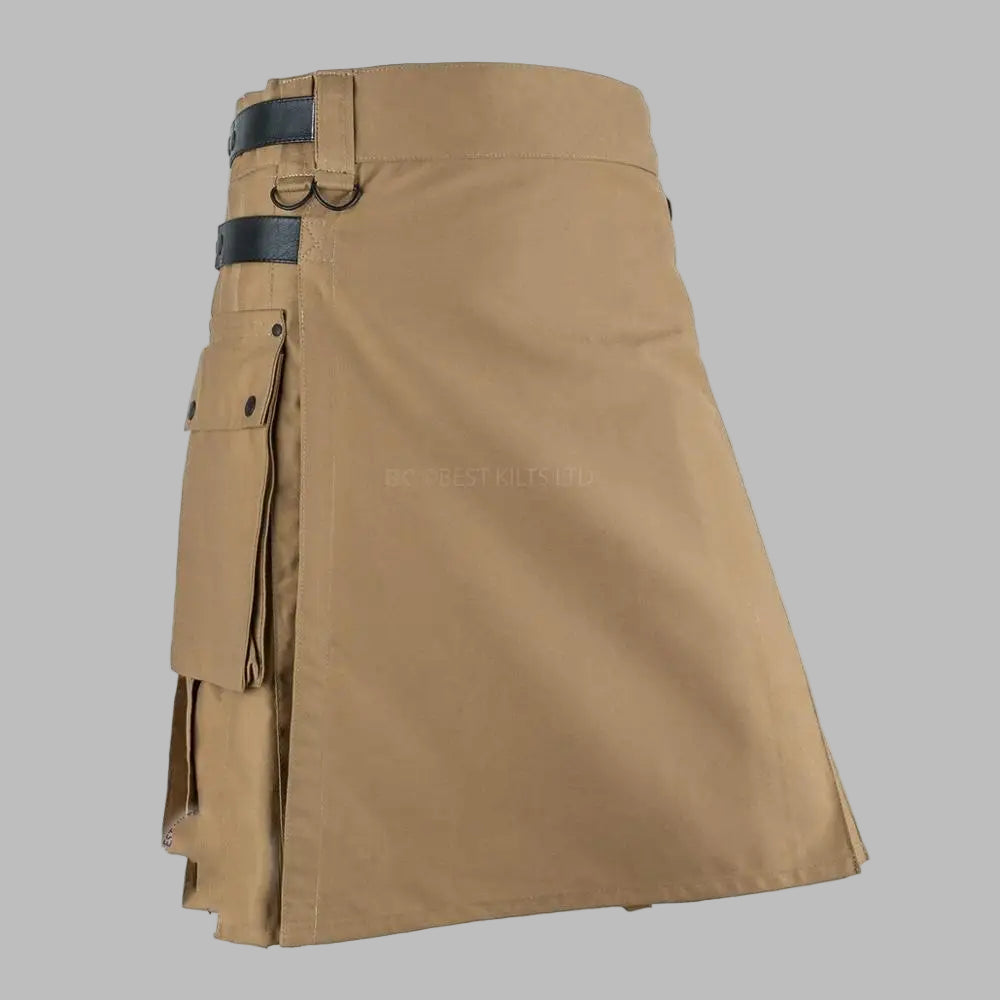 Béžový steampunk kilt s koženými pásmi a prackami Zobraziť možnosti