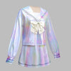 Biela holografická námornícka súprava Jirai Kei s mašľou Zobraziť možnosti