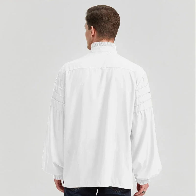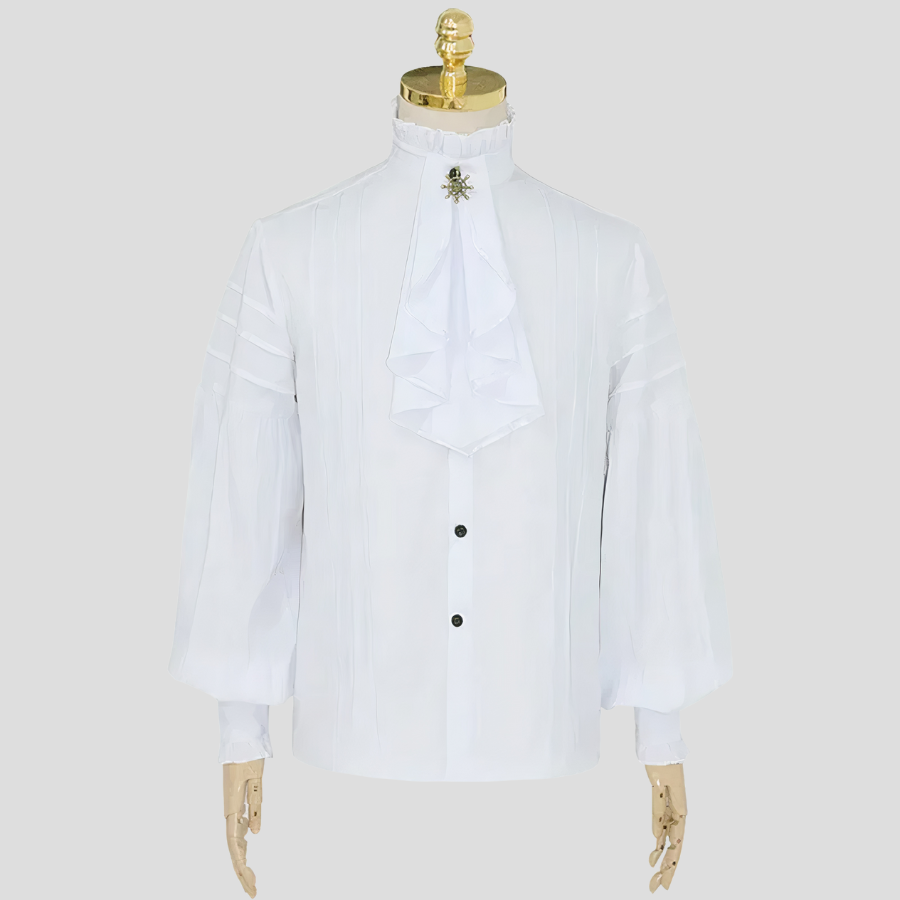 Biela steampunk košeľa s volánom a nadýchanými rukávmi