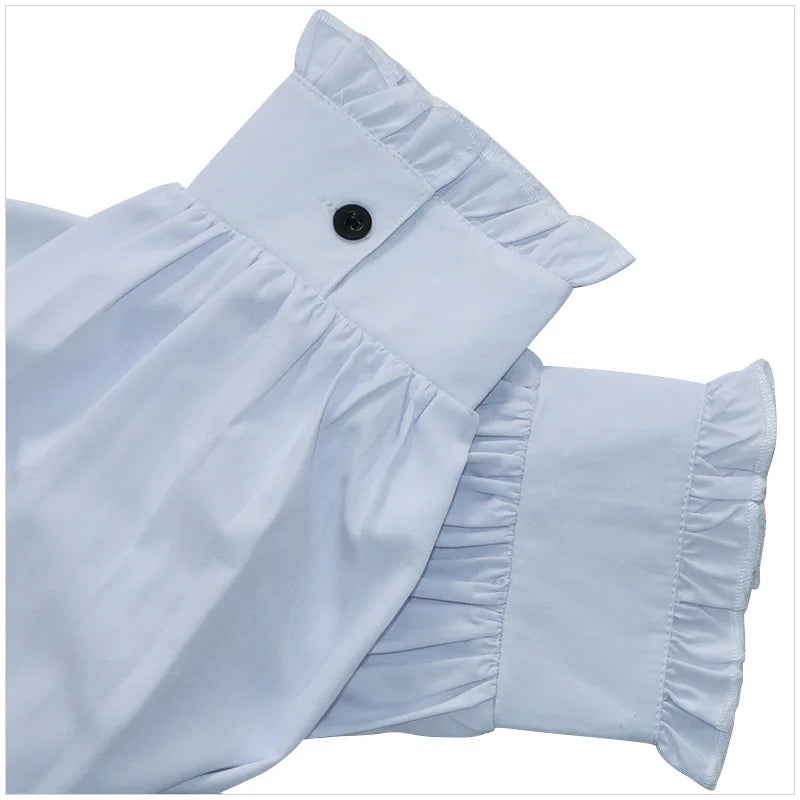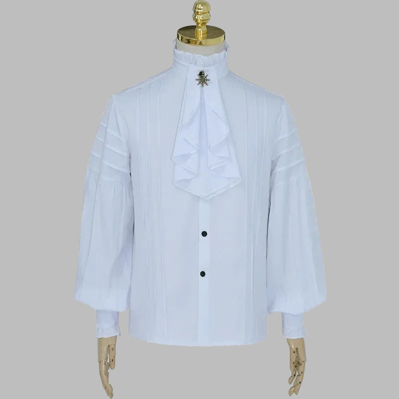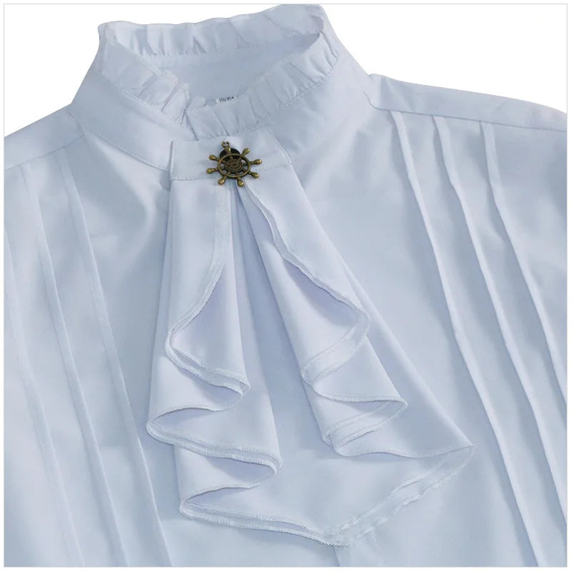 Biela steampunk košeľa s vysokým golierom a žabó XXL