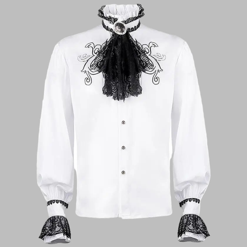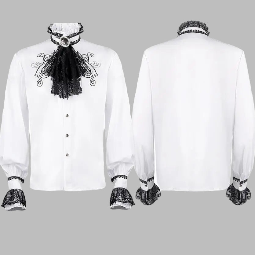 Biela steampunk košeľa s čipkovanými detailmi a žabó