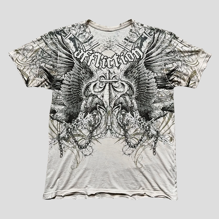 Biele tričko s gotickými krídlami a krížom Zobraziť možnosti