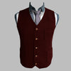 Bordová rocková vesta s hlbokým výstrihom do V a hnedými gombíkmi