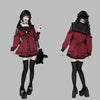 Bordové šaty s čipkou a mašľou v štýle Jirai Kei
