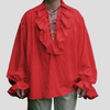 Červená rocková košeľa s viazaním a volánmi na rukávoch