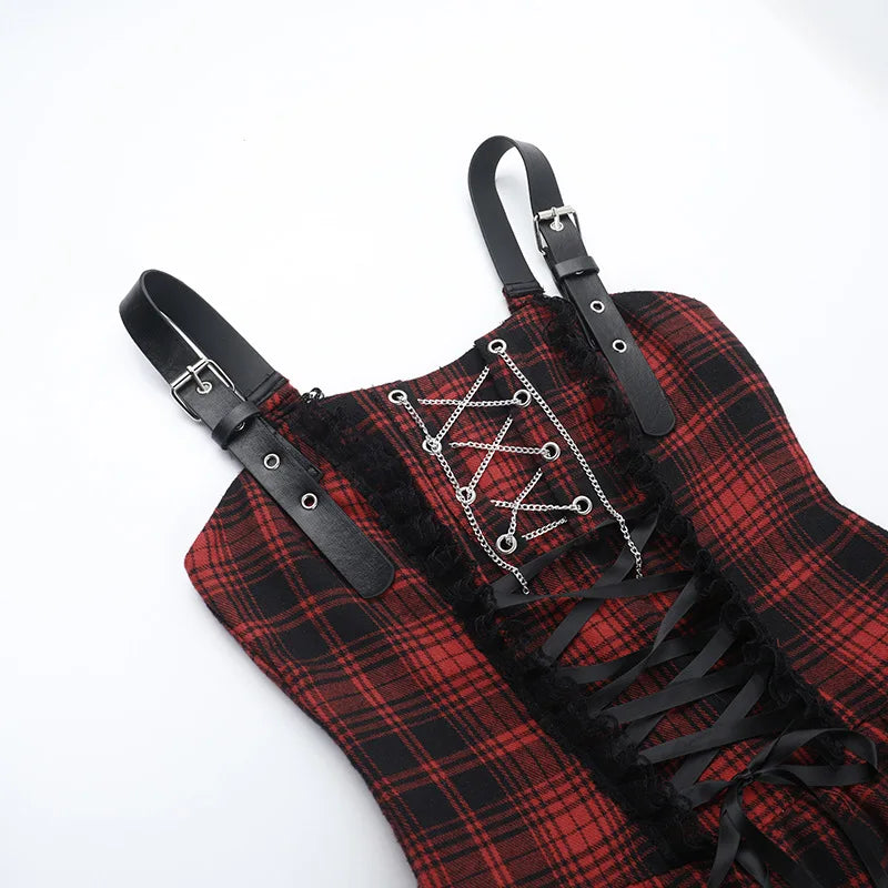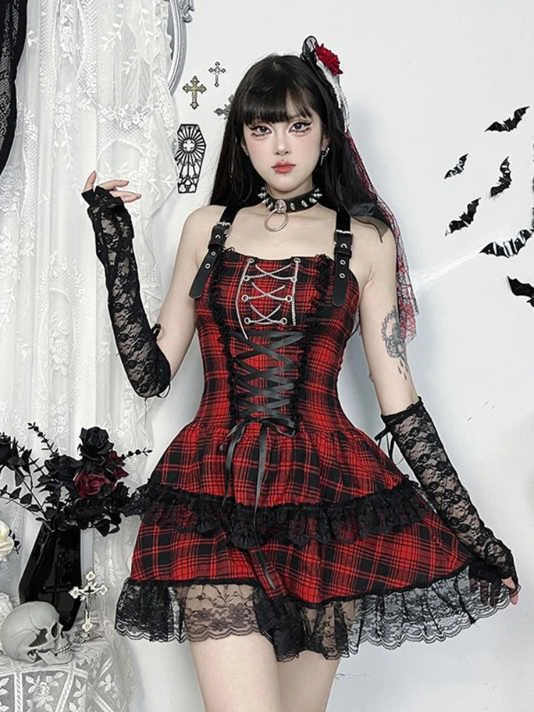Červené rock punk šaty s retiazkami a čipkou Zobraziť možnosti