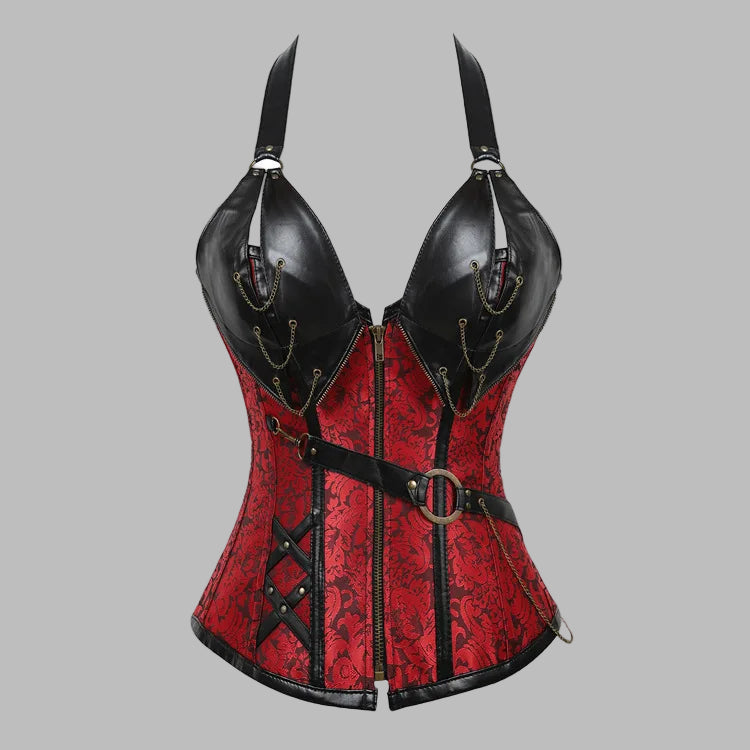Červený punk korzet s čiernymi koženými prvkami Zobraziť možnosti