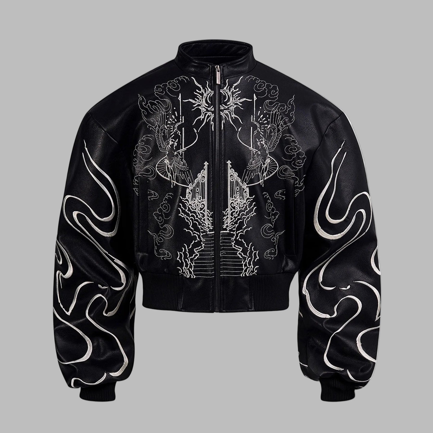 Čierna bomber bunda Goth metal s výšivkou anjelov a neba
