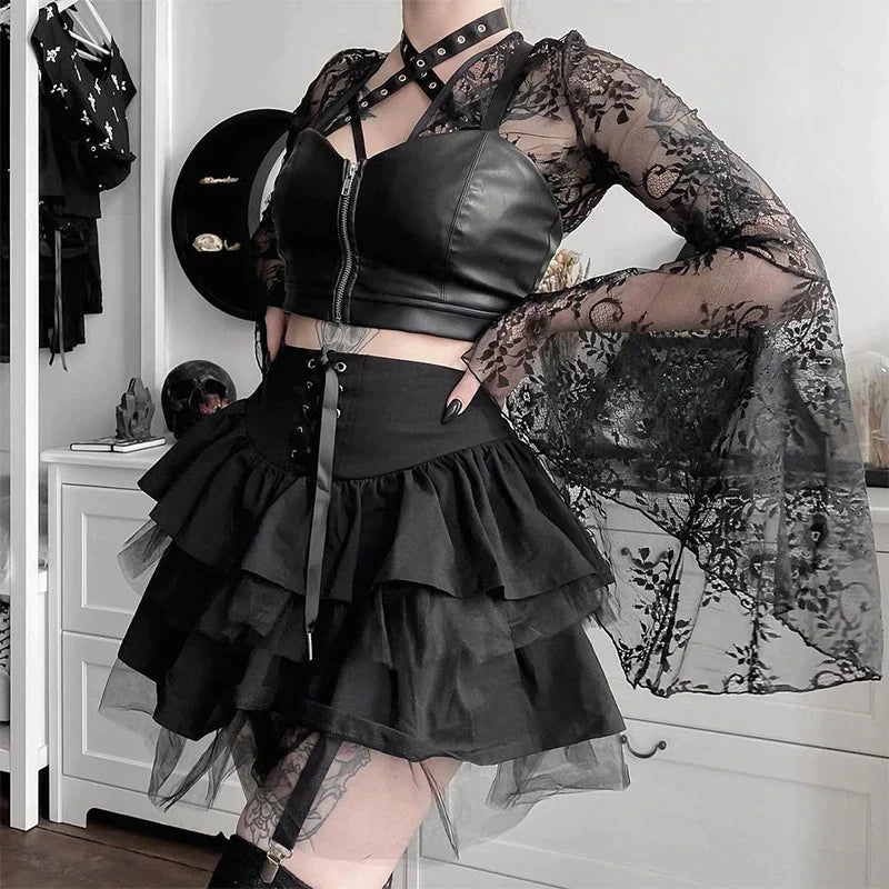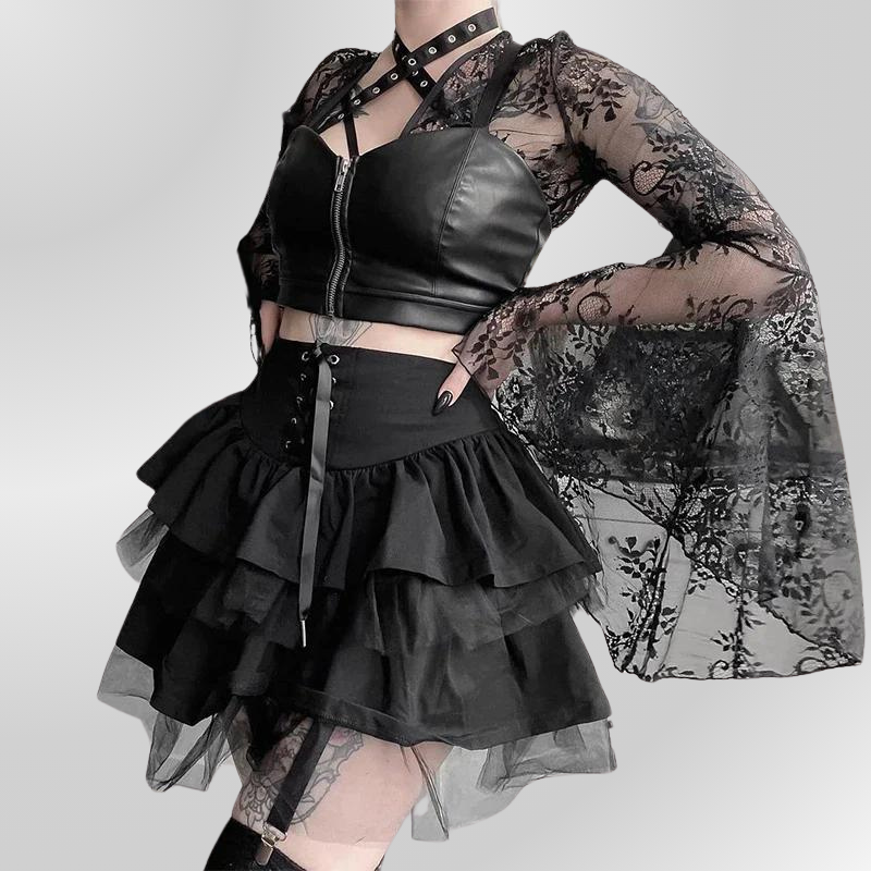 Čierna čipkovaná sukňa