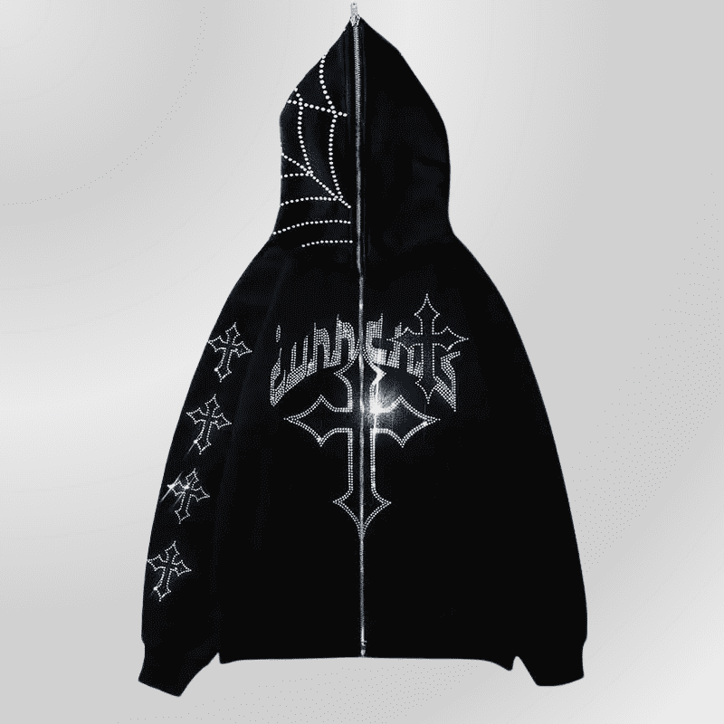 Čierna grunge mikina s gotickým krížom