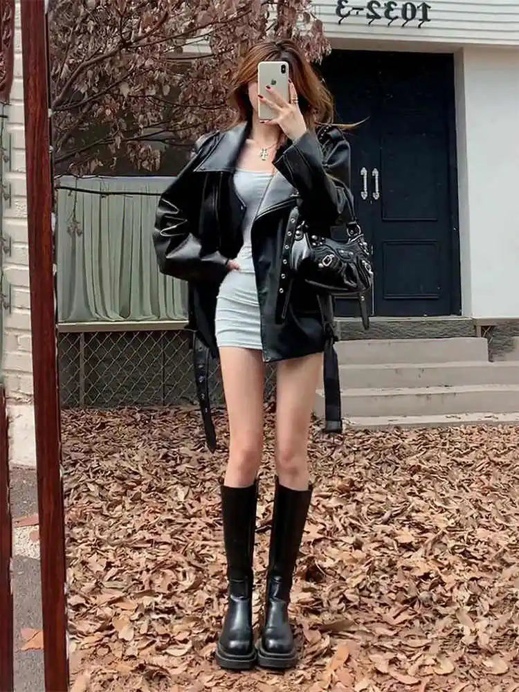 Čierna kožená oversize ramoneska v štýle goth punk metal