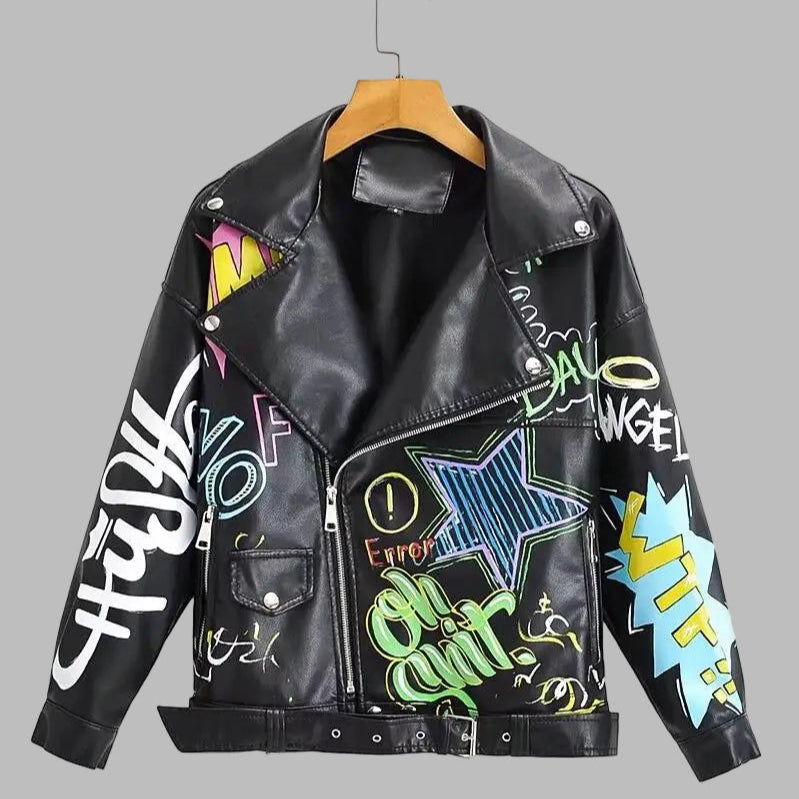 Čierna kožená punk ramoneska s graffiti Zobraziť možnosti
