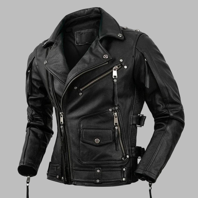 Čierna kožená punk rock metal ramoneska 8XL