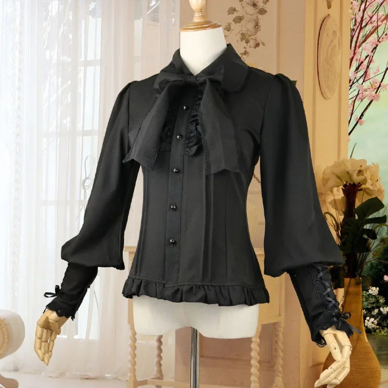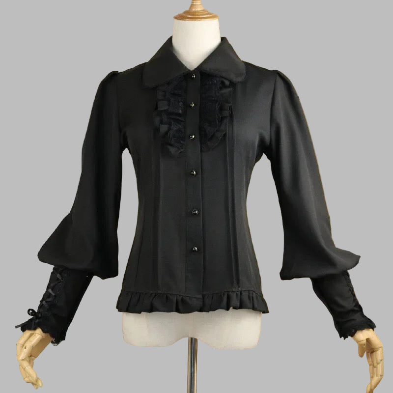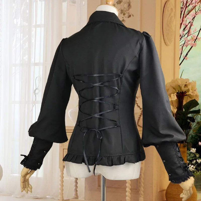 Čierna metalová blúzka s volánmi a šnurovaním rukávov