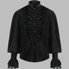 Čierna metalová košeľa s čipkovaným žabó a manžetami Zobraziť možnosti
