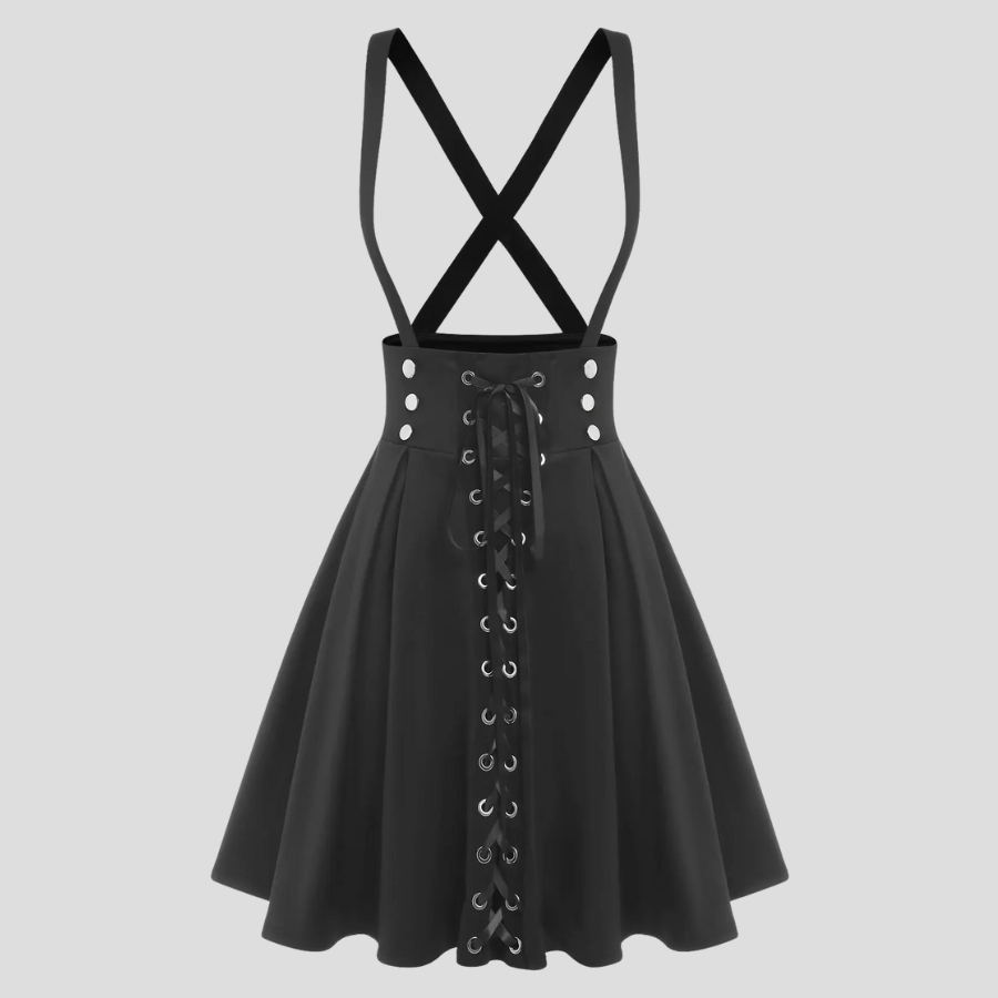 Čierna metalová sukňa s trákmi a korzetovým šnurovaním