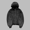 Čierna oversize mikina na zips s kapucňou s plameňmi, darkwear