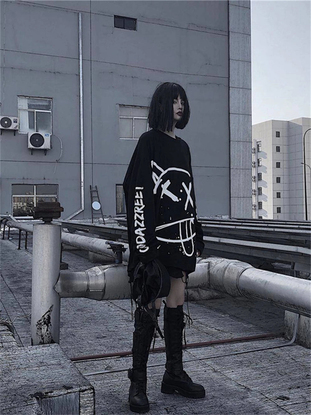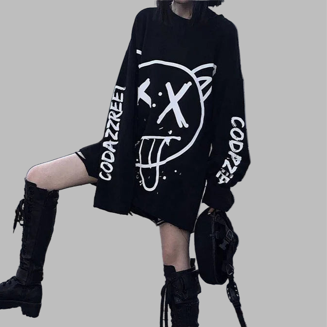 Čierna oversize punk mikina s bielou potlačou tváre