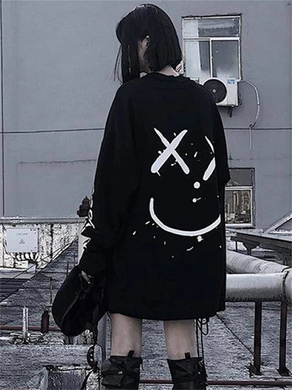 Čierna punk mikina s bielou potlačou tváre, oversize XXL