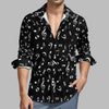 Rocková čierna košeľa s hudobnými notami, dlhý rukáv
