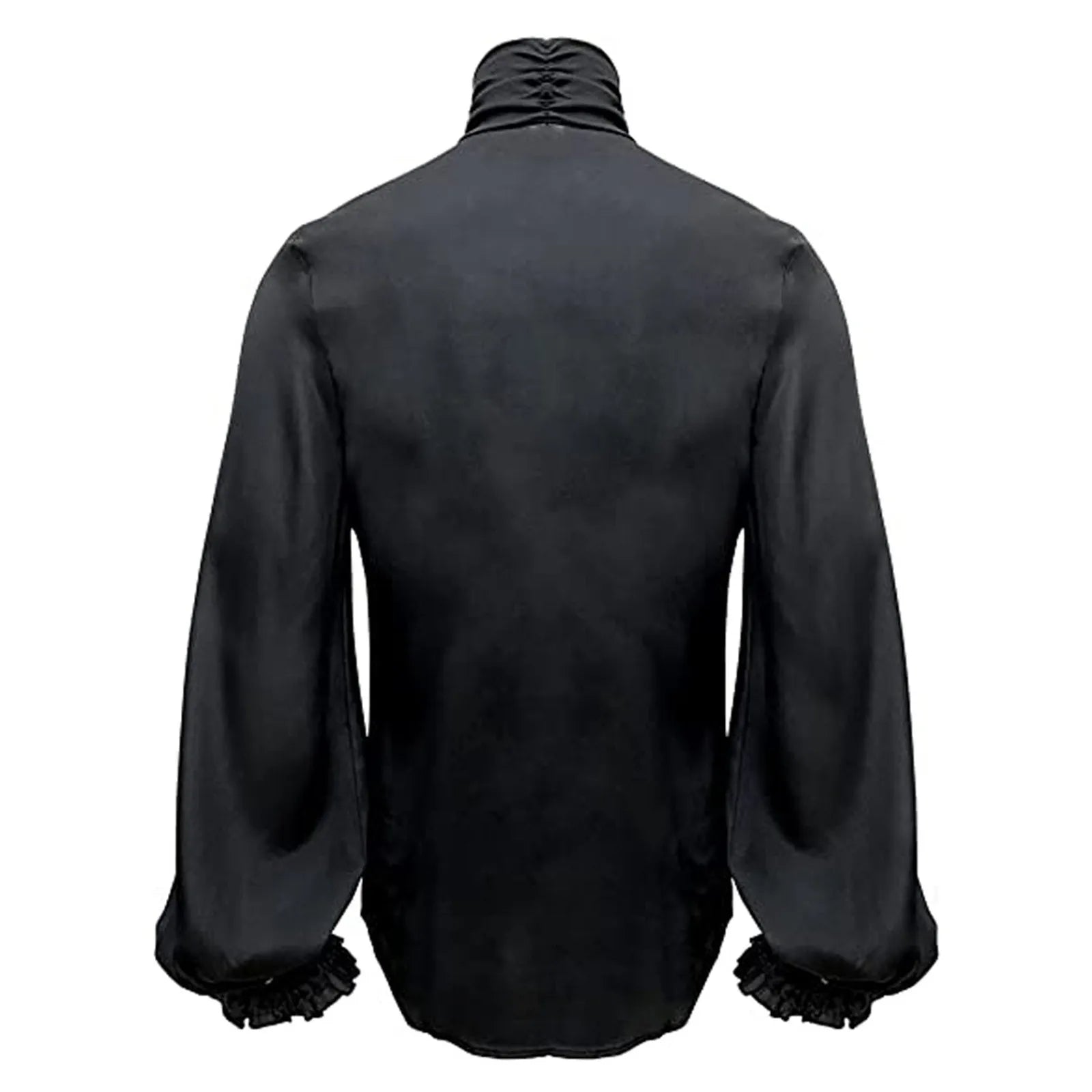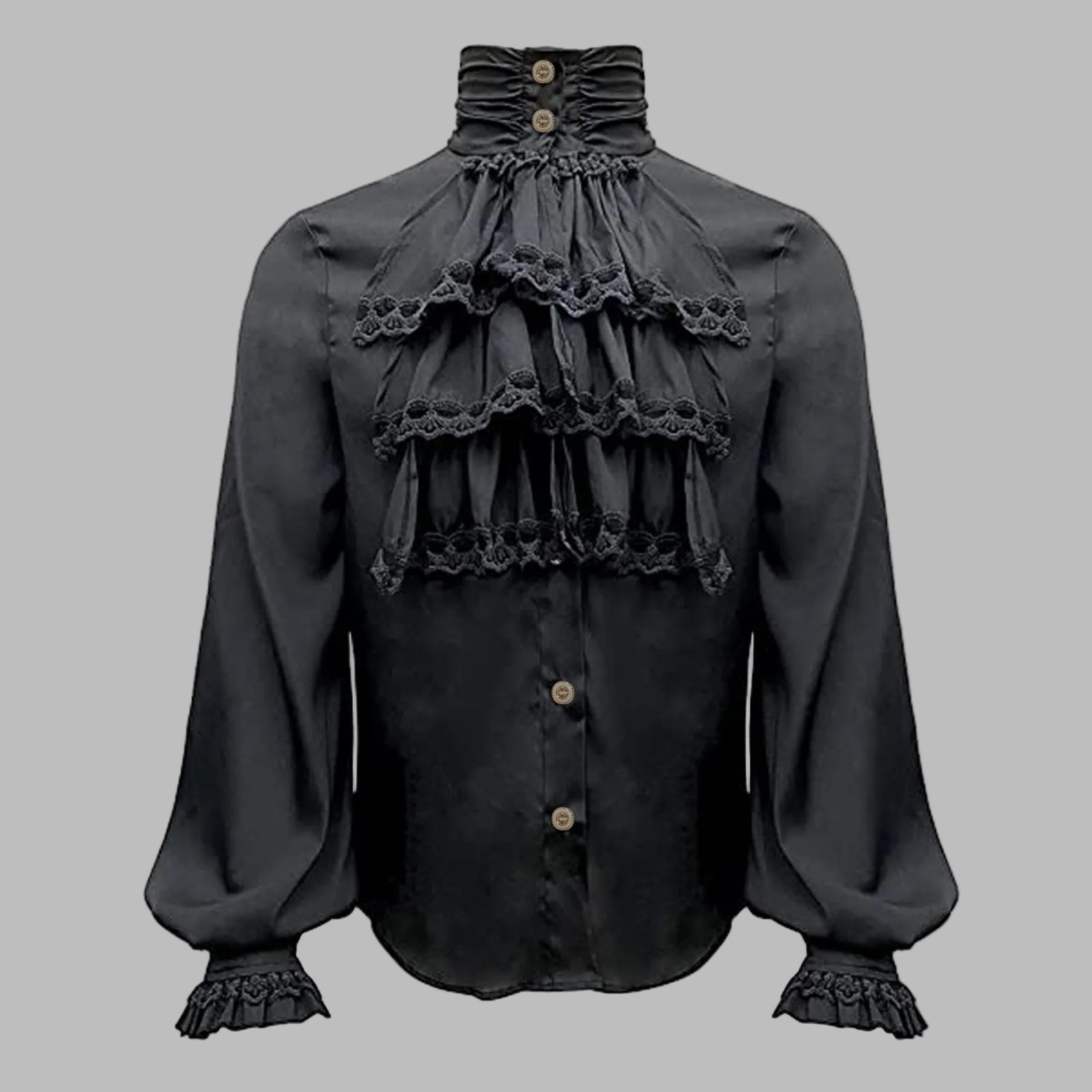 Čierna steampunková košeľa s čipkovanými volánmi a vysokým golierom