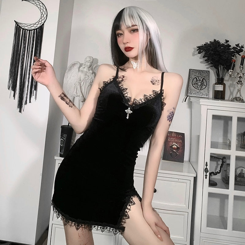 • Dekorácie: čierne čipky zvýrazňujúce oblečenie, kovový kríž