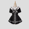 Čierne námornícke šaty s bielou mašľou Jirai Kei