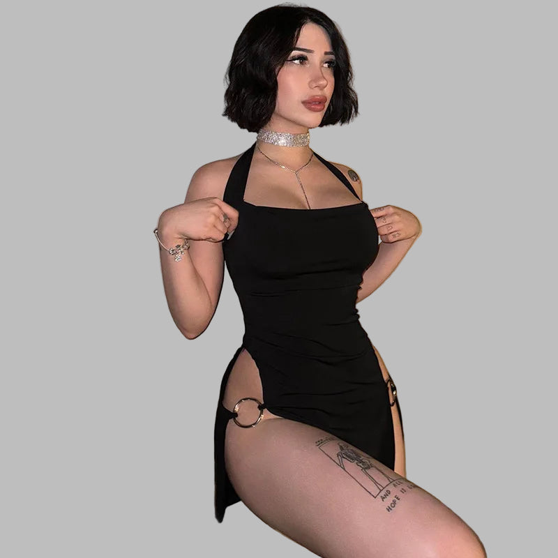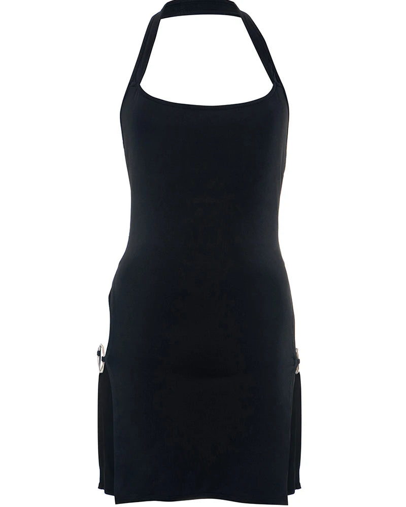 Čierne punk rock mini šaty s halterom a prackami Zobraziť možnosti