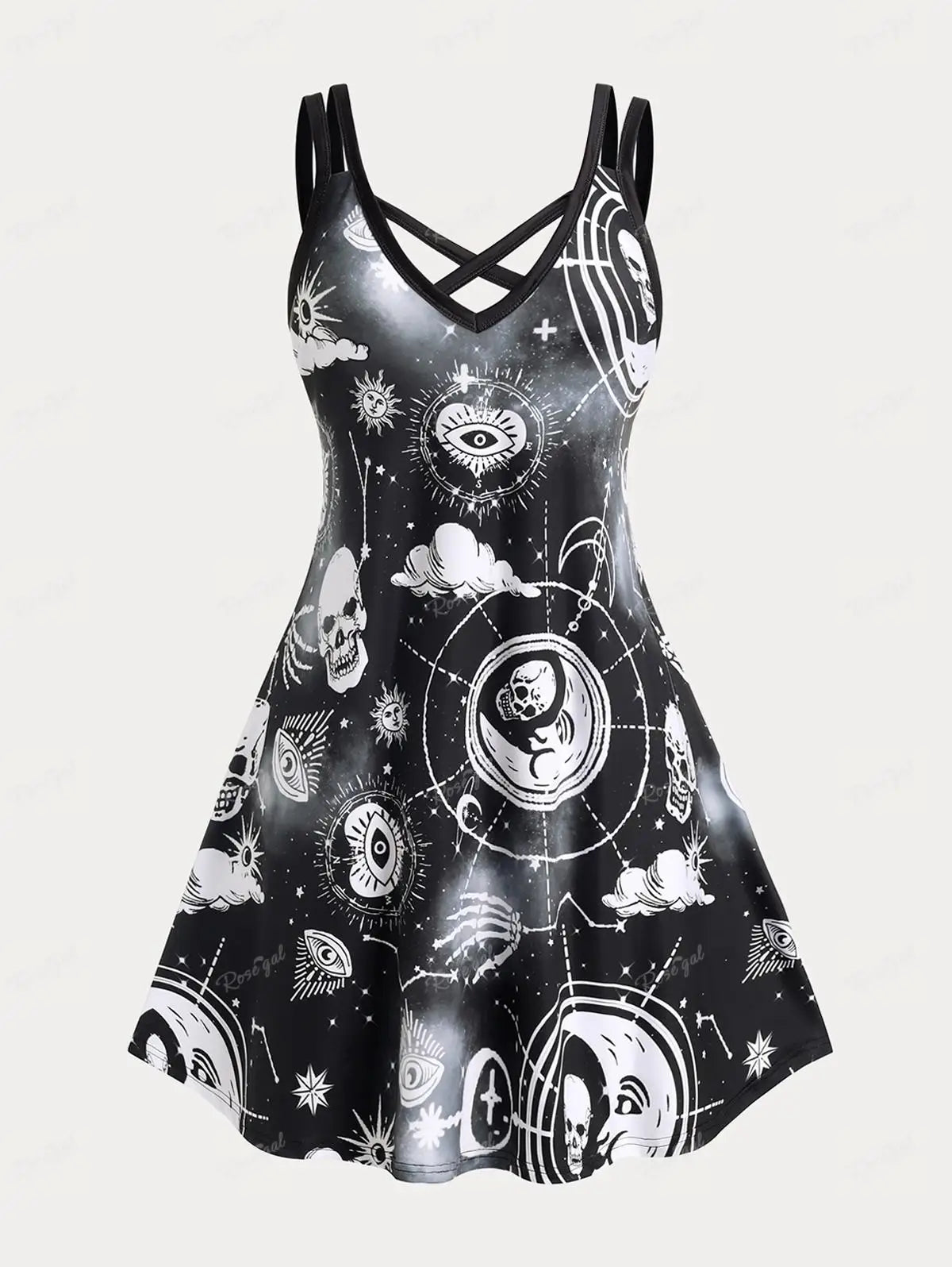 Čierne punk rock šaty s okultnými symbolmi a hviezdami 5XL