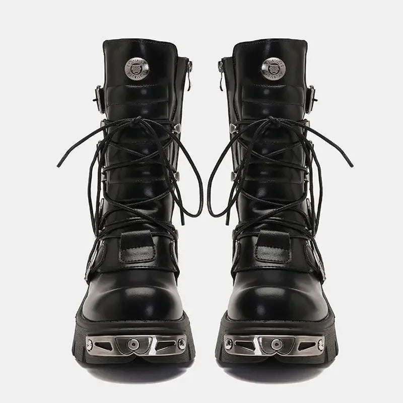 - Štýl: členkové čižmy do polovice lýtka v motocyklovom štýle