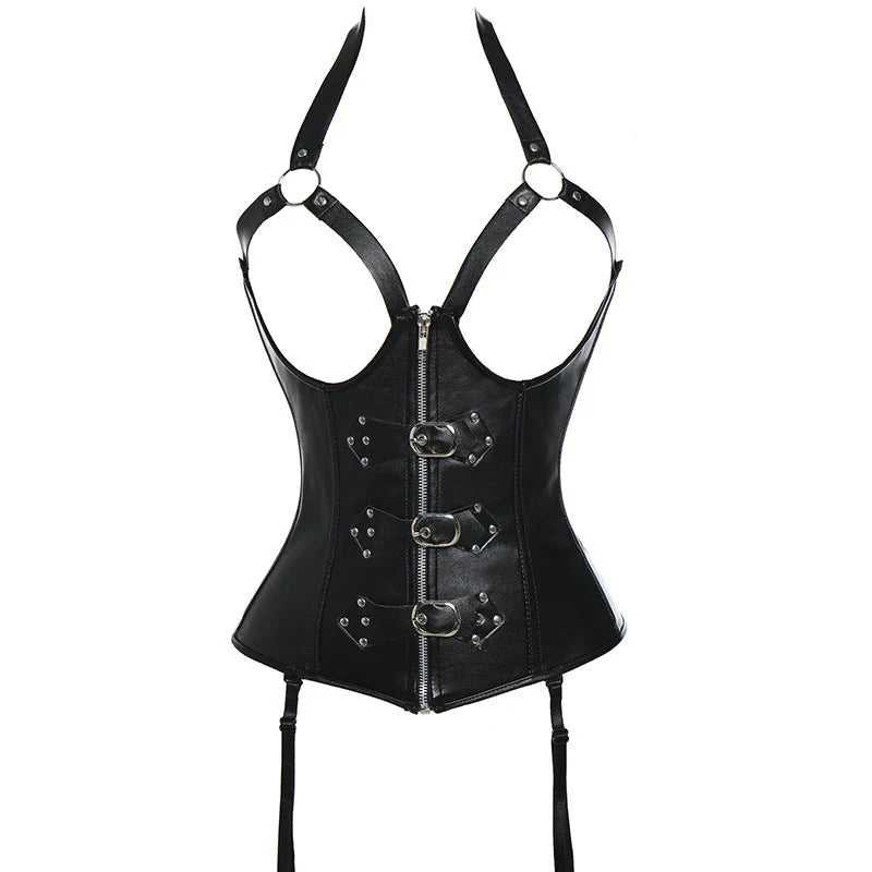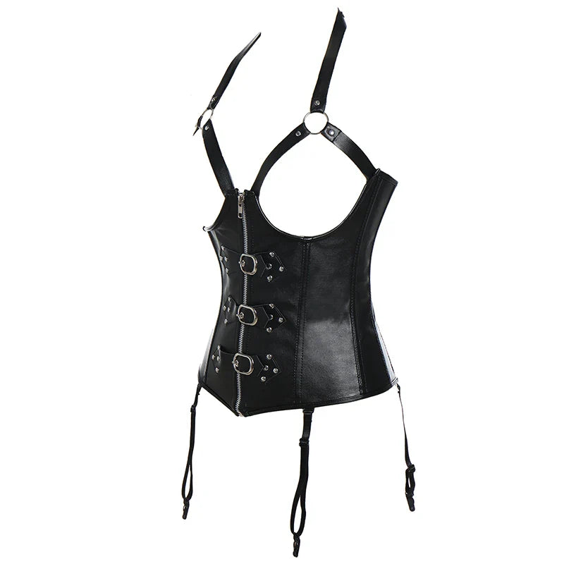 Čierny plus size korzet s ramienkami a prackami – gotický štýl