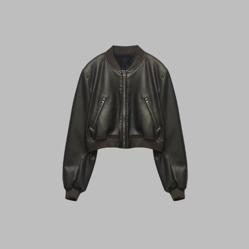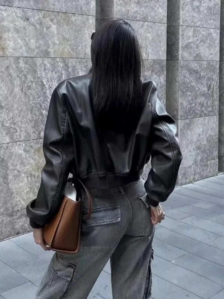 Dámska krátka čierna kožená rocková bunda Goth so zipsami