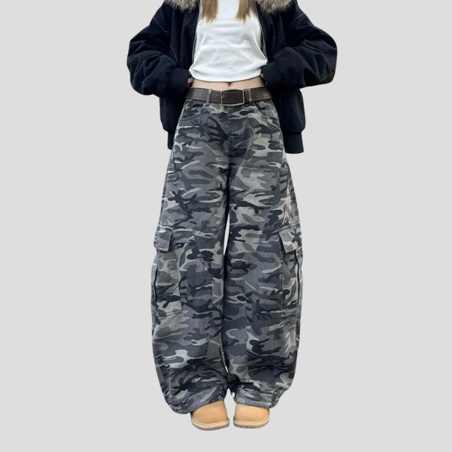 Dámske maskáčové cargo nohavice, vojenský štýl, oversize s vreckami