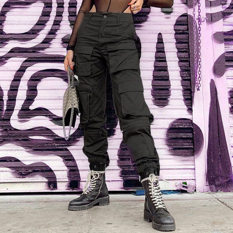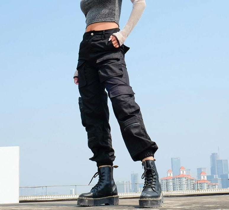 Dámske čierne cargo nohavice