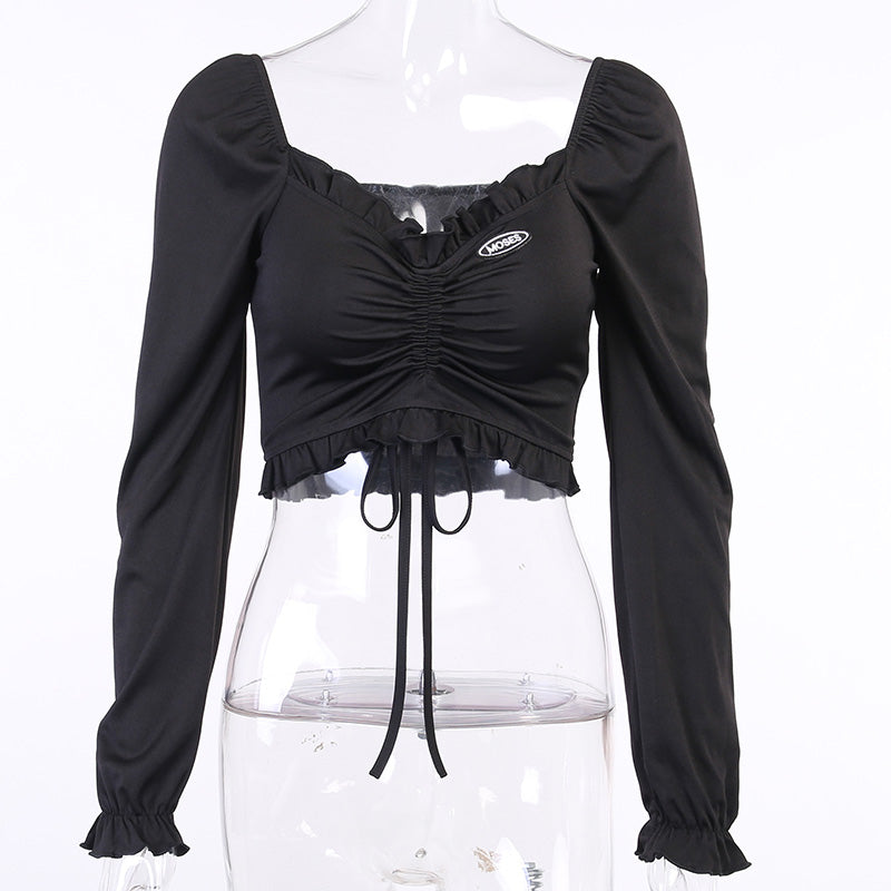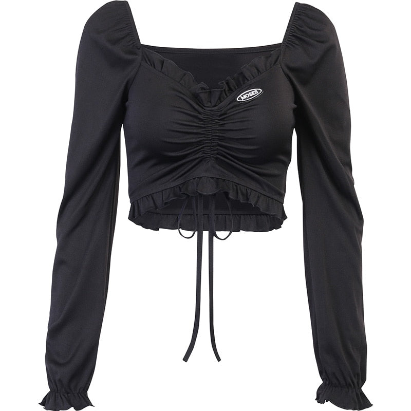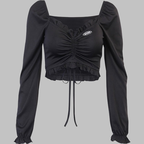 • Vlastnosti: Dlhé rukávy, Sexi, Na viazanie, Crop top, Riasenie
