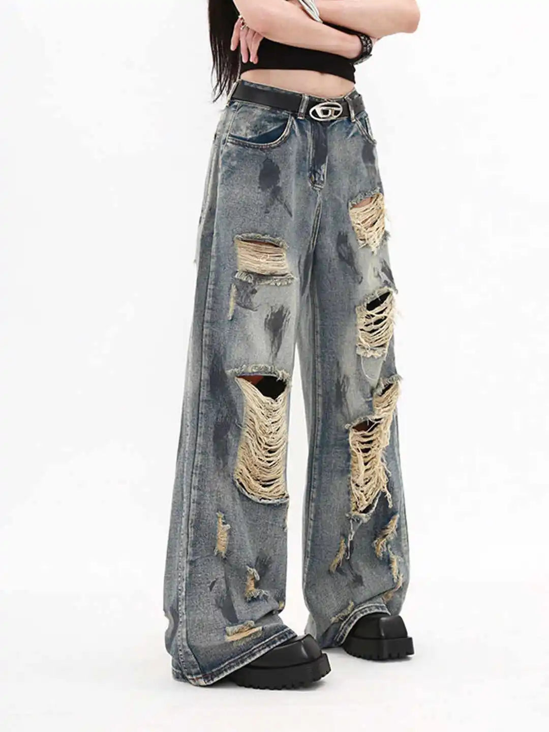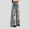Dámske široké roztrhané grunge džínsy
