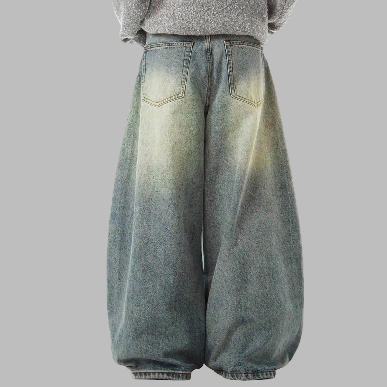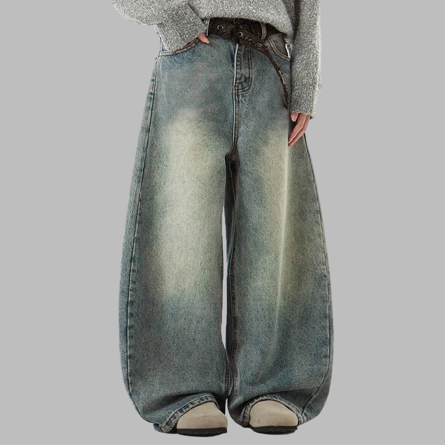 Dámske sivé grunge baggy džínsy oversize so širokými nohavicami