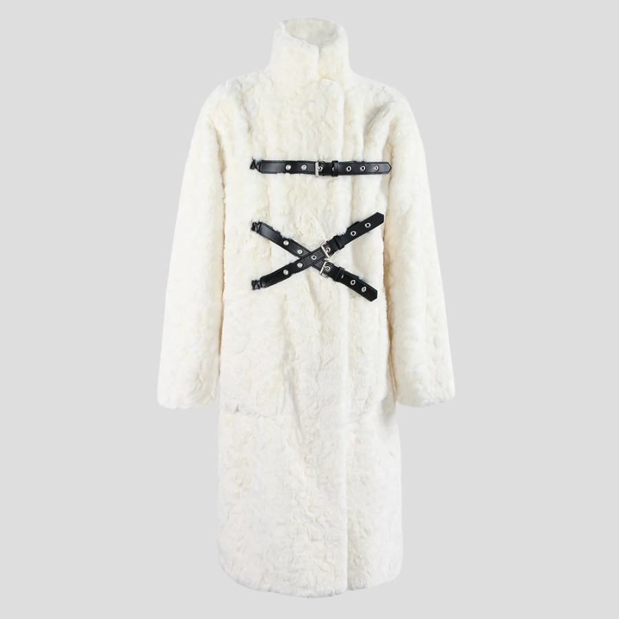 Dlhý biely steampunk kabát s punk rock pásmi Zobraziť možnosti