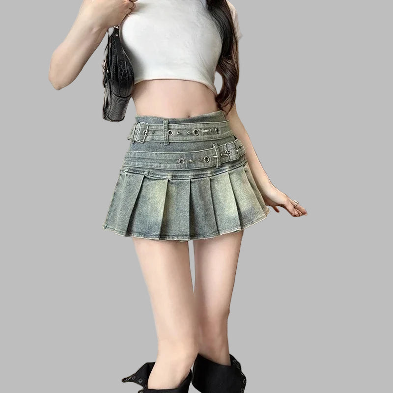 Džínsová volánová sukňa s čiernou čipkou punk rock štýl Zobraziť možnosti