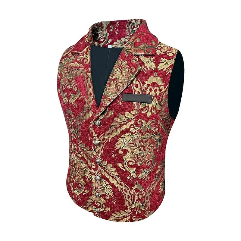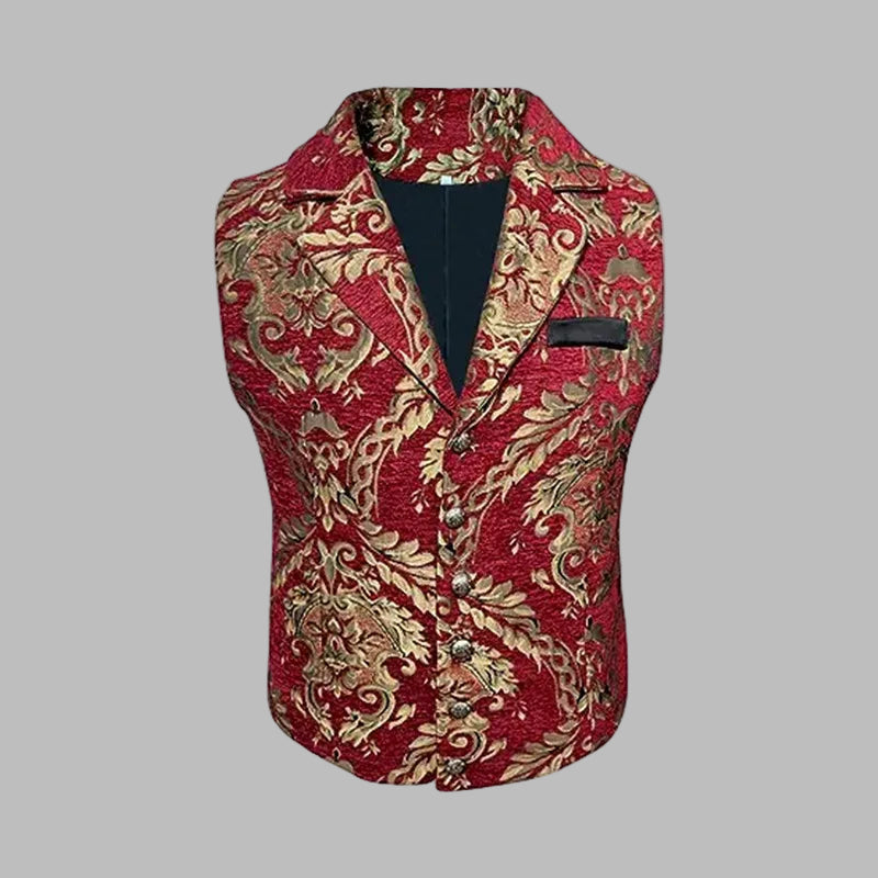 Elegantná červeno-zlatá brokátová steampunk vesta