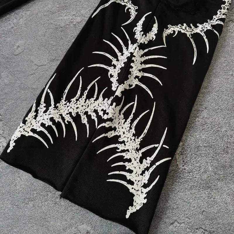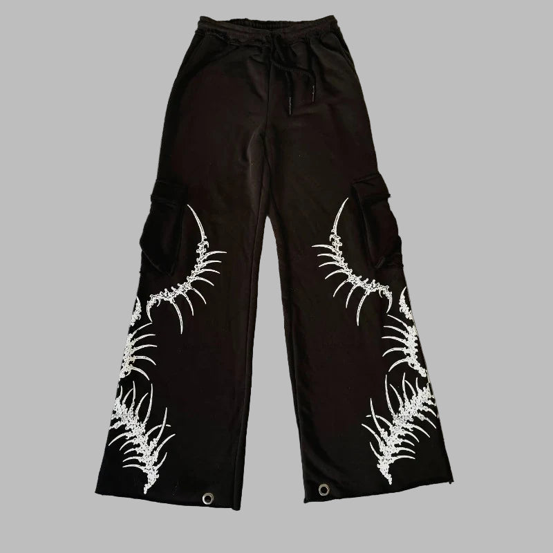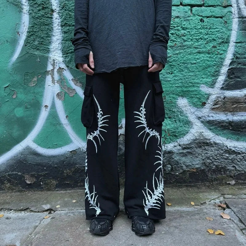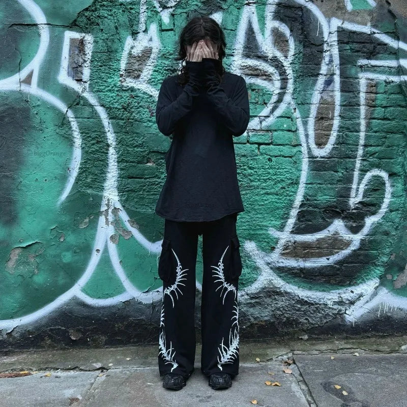 Gotické grunge nohavice s potlačou kostry, darkwear