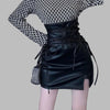 Gotycka kožená mini sukňa so šnurovaním punk rock štýl