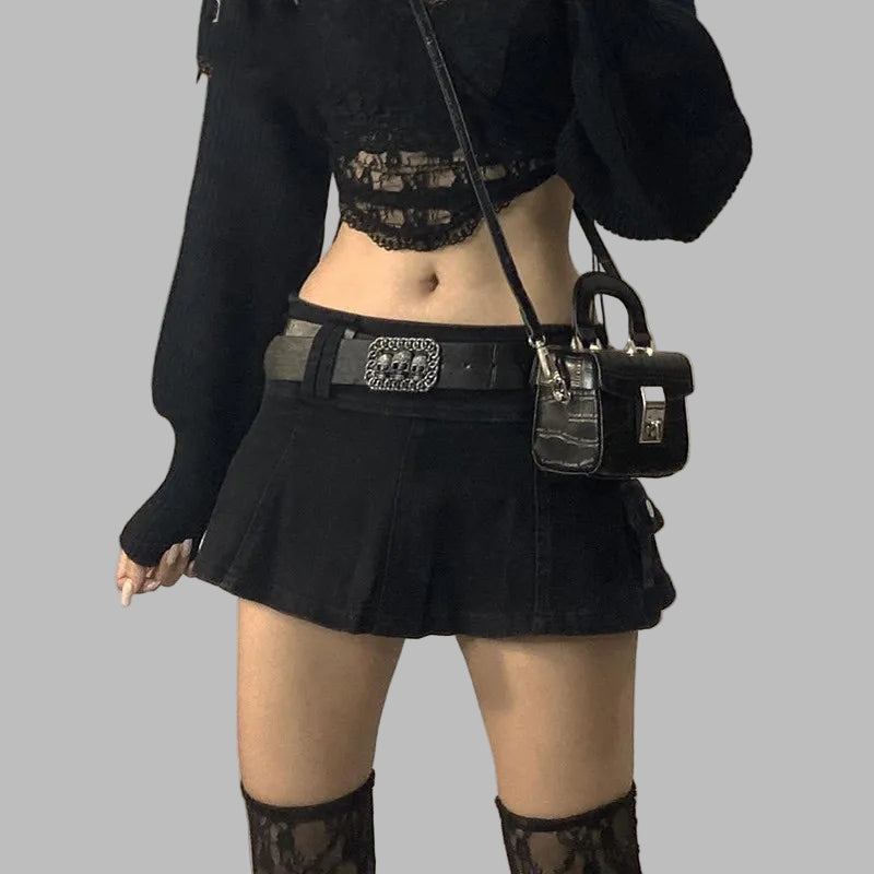 Gotycka plisovaná mini sukňa punk s kovovou aplikáciou