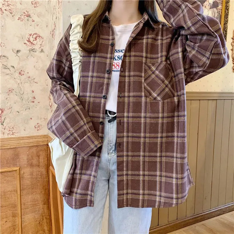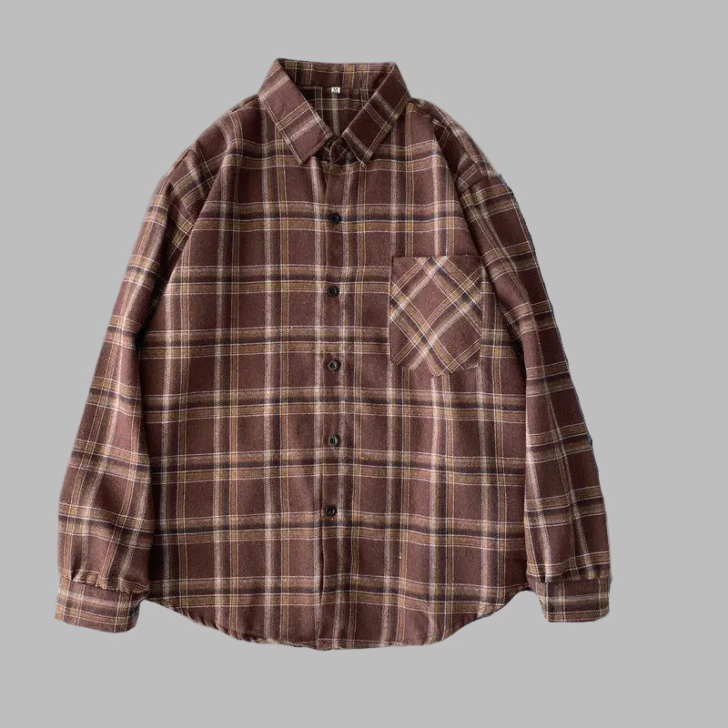 Hnedá flanelová károvaná košeľa punk rock s vreckom Zobraziť možnosti