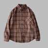 Hnedá flanelová károvaná punk rock košeľa s vreckom