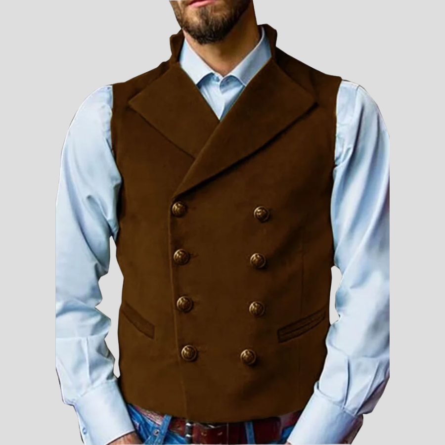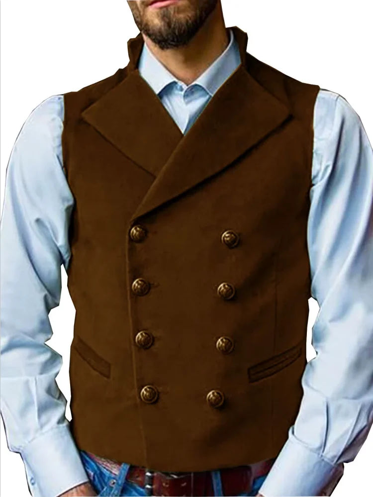 Klasická hnedá steampunková dvojradová vesta s gombíkmi