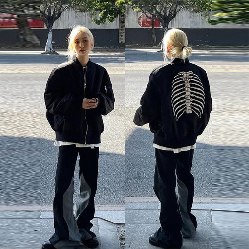 Skeletový čierny kabát, pouličné oblečenie