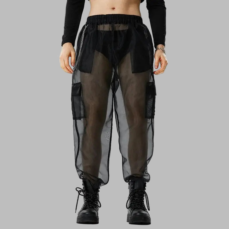 Mestské sivé steampunk cargo nohavice so sieťkou