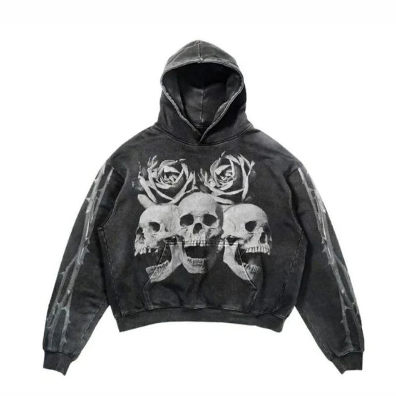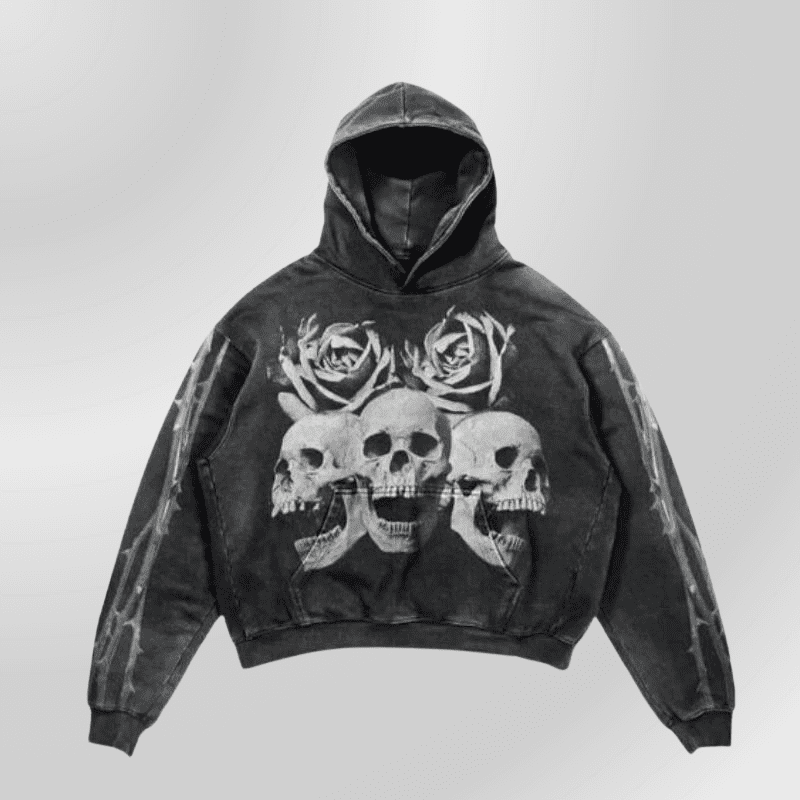 mikina s kapucňou Grunge s motívom kostry – Flower XXL
