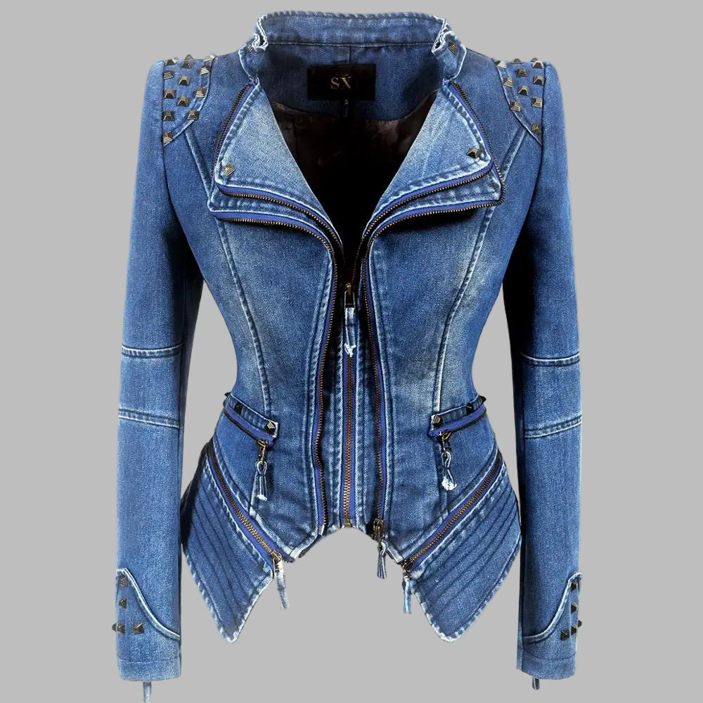 Modrá punk rock rifľová bunda s cvočkami